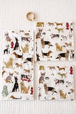 Each piece in this bundle is made of a super-soft, absorbent microfiber on one side and the other side a most adorable muslin fabric by Little Unicorn (100% cotton). The lovey teether boasts a natural wood teething ring. Info card included.